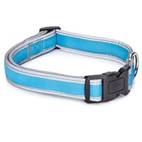 The collar was smaller in width than expected. My dog snagged the nylon material immediately while she was scratching her ear. It's also very stretchy, which makes me nervous on walks because she could slip out of it. It is very reflective, though.