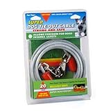 This cable is the strongest I have found. My 50 lbs dog has blown through 3 tie outs and 3 different collars. She should not have on any of them according to their ratings.I took off 1 star for the hooks. They are the type that my dog somehow gets off from. I had to tape the hook clasp and attach a different one. The hook that is on it is the type that just swings like a gate. It is not the kind that works better that slides in and out.