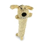 My dog has three of these Loofa "puppies" the original "natural" color, sort of a hot pink colored one and a large lavender Loofa Dog. My dog is Lab/Poodle/Router/table saw/grinding wheel and you name it. The first Loofa puppy had it's belly squeaker removed and I gave it a tummy tuck. Then the ears and tails came off. These Loofa Puppies are Still her old favorites. The Easter Bunny brought her the lavender Loofa dog and it still has all its original body parts. I think it's too big for my dog to be comfy doing the toy parade with. The other two Loofanstein puppies seem to be her favorites to curl up and gnaw on. They have held up much better than I anticipated, wash well although I suggest not to hang them to dry, Abby thought there was a mass hanging in the shower and was sulking at the sight of her loofa friends dangling in the shower. They do well on air dry or low in the dryer.Best Deals for Loofa Dog Plush Dog Toy (Colors May Vary)