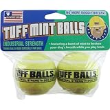 Your better off with some Penn tennis balls. These smell like mint but I haven't noticed any minty smell on my pup. That may be because I'm not smelling my dogs breath on a regular basis.They aren't chew toys, and they are not marketed as them. I tried playing fetch with him and he refused to give it back, I ran all over the place and crawled under the table trying to get it back. Eventually he lost it somehow and my mom found it in her closet.