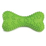 I bought this Chompy Romper Bone Dog Toy for my 10 week old Westie. It is a nice size for my 5-6 pound pup and it has a texture that is very desirable for chewing (not rock hard like other chew toys) and she is very interested in chewing on the bone. I don't have to put peanut butter on this chew toy like I do with other toys because it smells good by itself-like vanilla. I don't want her to get used to having peanut butter all day long so this bone was a good alternative. I am really disappointed in the bone because the rubber on the bone is actually coming off in small pieces where she chews and I don't want her swallowing these pieces of rubber. For this reason I had to take the chew toy away from her. I would consider this to be the perfect chew toy if it didn't fall apart. I feel it is unsafe and would not recommend this toy. The only reason why I rated it 2 stars is because of its great texture and smell other wise it would be 1 star.