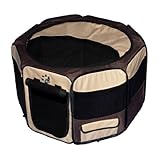 We bought this pen for our 5 month old Wheaten Terrier. The first few times she was fine but after about a week or so she figured out that she could tip it over and escape relatively easily by jumping up on one side. She's a little too big to put the roof on so for now we are going to save it for our next puppy. Very durable pen and great construction, I would recommend for smaller breads or go with the bigger pen.Best Deals for Pet Gear Octagon Pet Pen with Removable Top for Cats and Dogs