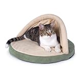 My cat seems to like to sleep on the thermo-kitty hut but I was disappointed that the hood does not stand up as depicted in the pictures for this product. When she is asleep I can pull the hood partially over her. She does not burrow under covers and, since the hood does not stand up, she winds up sleeping on the open area left when the hood is down. The bed pad is thicker than the heating pad she had been sleeping on and she likes that. It also doesn't get as warm as the heating pad but she doesn't seem to mind. We have put the heating pad in my office and she only gets on it at night when I am working late, so it seems that she is willing to swap the extra heat for the comfort of the thicker pad. I just wish she could be shielded from the cold by the hood of the new bed which was what I envisioned when I made the purchase.Find helpful customer reviews and review ratings for K&H Thermo-Kitty Hut
