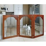 Looks nice when out, easy to tuck away when not needed, and works well for my 40 pound dog who can jump rather high.Honest reviews on Majestic Pet- Free Standing Wood And Wire Pet Gate