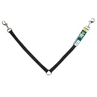 Works as promised. Very heavy duty. Doesn't appear to be heavy duty. The straps are not the size of car safety belts and the buckles are not the size of vehicle toe clips, but this is a VERY heavy duty item that will last and will hold any breed dog. Strong enough for bigger breeds and small enough for the little ones. Clip one leash and able to control (or try to control) two dogs at once. I have two shepherds, so I try. Mostly they just trot along together and it is long enough to give each dog their distance. Great product.