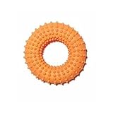 My border collie loves this toy. She seems to like the soft nubbs and can bite down on the soft ring without hurting her teeth. Its soft enough to toss around the house without having to worry its going to break something. The squeaker is an added plus. Looks exactly as pictured and is soft latex.