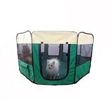 Have a small, older dog who was feeling anxious when left home alone. Started having accidents. Set up his food, water, and blankets in the pen. Left the door unzipped and he started going in by himself to eat and nap. We call the pen Jake's apartment :). He's now feeling safe and comfortable. Much better than a small kennel. I am impressed with the strength of the velcro bottom. It's secure enough not to separate so he can't get out. Product is sturdy, yet easy to disassemble if we want to move it to another room. Zippered top makes it easy to get to his food and water dishes so no one has to go through the doggie door. Smartly made. Fantastic product. Great price. Thank you.